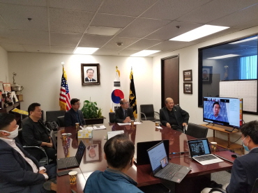 평통이 데이빗 류 LA 시의원을 초청해 ‘LA시 현안과 한인 정치력 신장’을 주제로 최근 화상 강연회를 열었다. 이날 류 시의원은 LA 평통 임원진과 위원들에게 코로나19 및 시위사태 등 관련 LA 정책을 설명하고 한인 2세로서의 경험과 정치력 신장 방안 등에 대해 의견을 나눴다. LA 평통 회장단이 류 시의원의 화상 강연을 듣고 있다.
