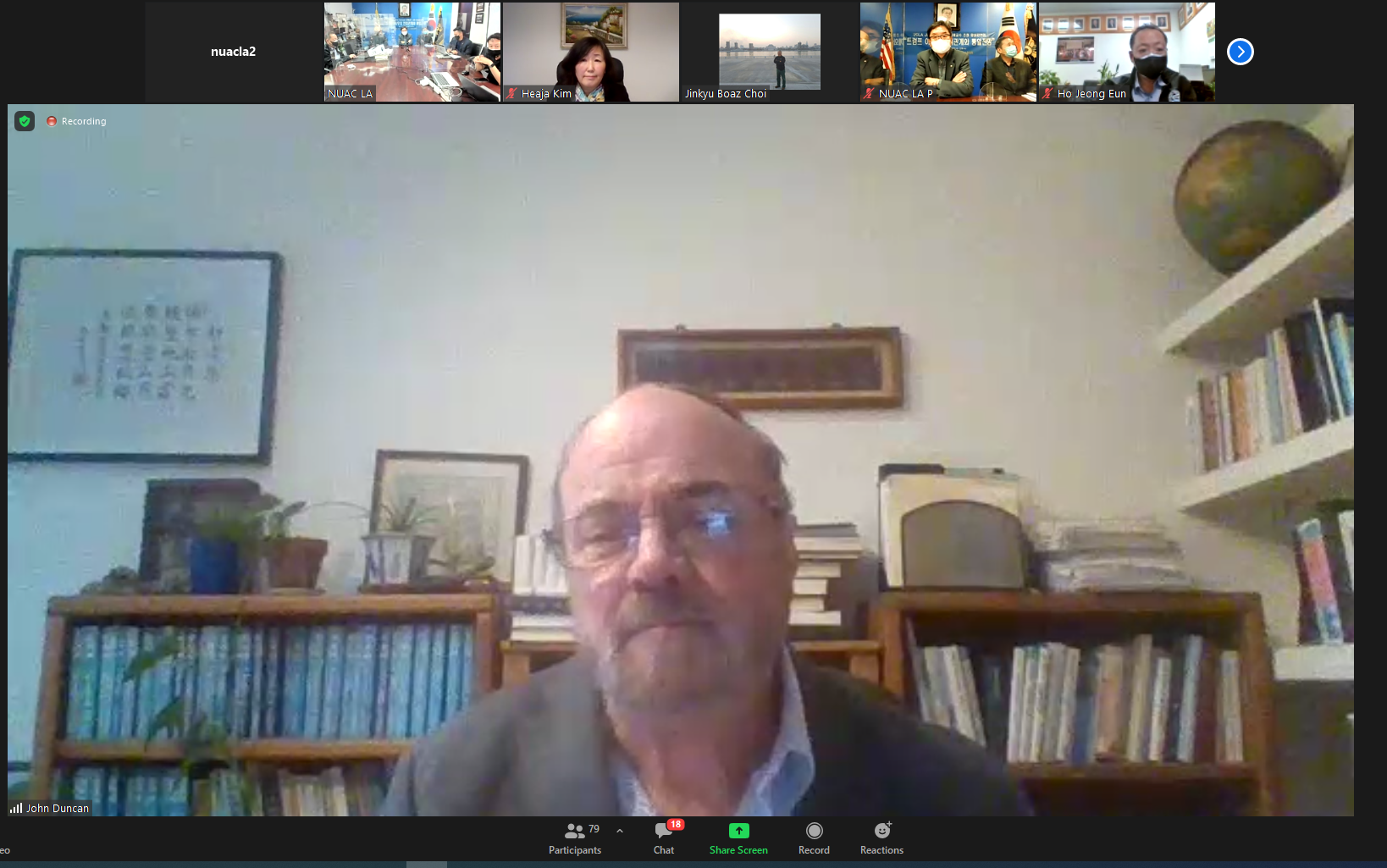 지난 10일 존 던컨 전 소장은 민주평화통일자문회의 LA협의회(회장 에드워드 구) 초청으로 온라인 강연회를 열었다. 바이든 행정부의 한미관계와 대북관계를 주제로 한 강연회에서 던컨 전 소장은 트럼프 전 행정부와 바이든 현 행정부의 차이를 짚었다. 이어 앞으로 펼쳐질 미국의 동북아 및 한반도 정책을 전망했다.